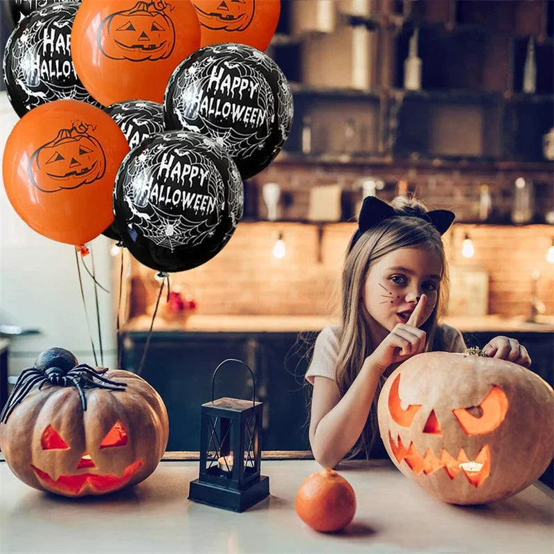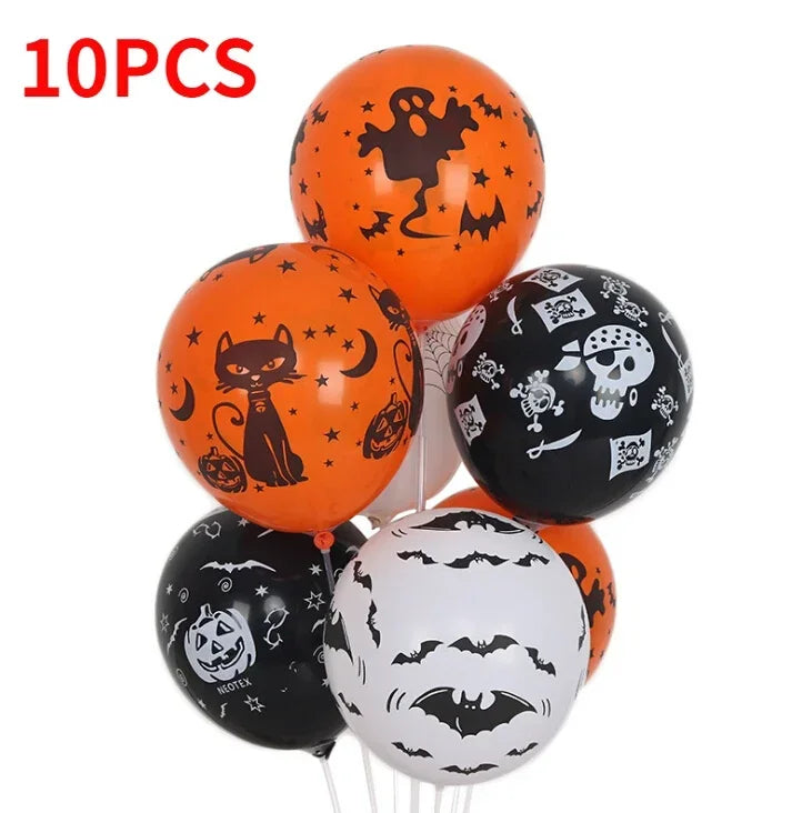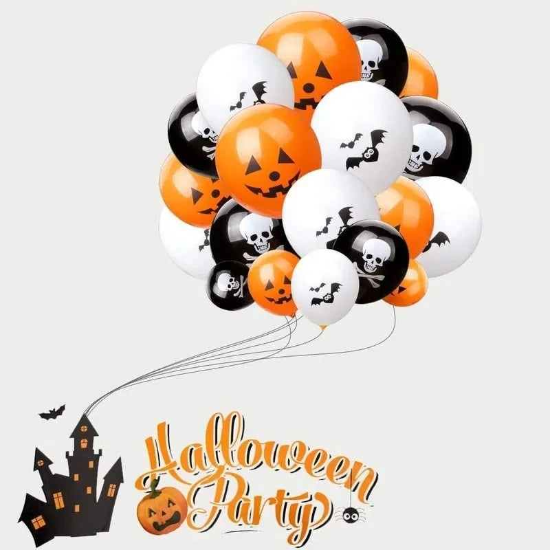 Design: Each balloon features a thrilling mix of spooky designs, including blood splatters, creepy hands, menacing skulls, and playful pumpkins.