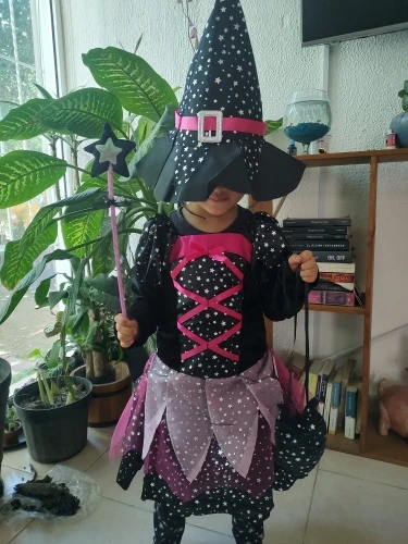 Pretty dress for Halloween 🎃 🎃 my daughter is happy with her costume... however, take 1 to 2 sizes up so that the dress is long enough because otherwise it only reaches just below the knee. I added a hoop underneath otherwise the dress is flat and not puffy.